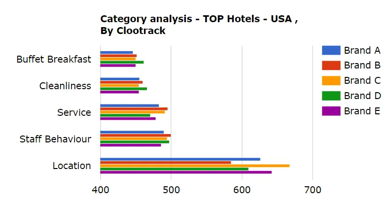 After a detailed analysis of 40,338 traveler and guest conversations, Clootrack analyzed 5 Top US hotels. With the help of AI and online customer data, Clootrack created a list of the top customer perception drivers. Each of the TOP 5 US Hotels was ranked based on customer perceptions.
