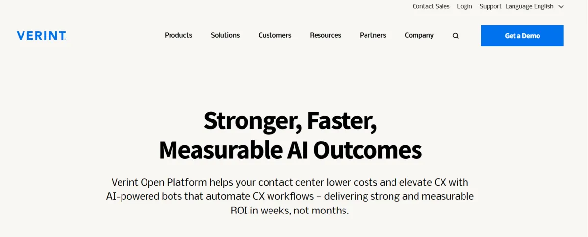 Verint is a voice analytics powerhouse long used in high-volume contact centers and increasingly tied to product UX fixes (e.g., customer effort detection, advanced data mapping, AI-led outreach triggers). It’s voice-led analytics transcribes and analyzes 100% of recorded calls to surface themes, effort, and sentiment—paired with automation and bots that route actions.