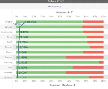 Customer sentiments can be positive or negative around a particular topic. Airports can deep dive into conversations to capture positive emotions to strengthen their offerings further. But at the same time, negative sentiments offer numerous opportunities for improvement.